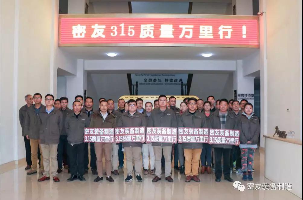 长久以来,总裁吴建明都非常重视产品质量,一直把“产品质量是密友人的生命”奉为企业发展的宗旨,提出“产品质量+服务质量=赢得市场”的口号;总裁强调,每年度的315质量万里行意义非常重大,主动走出去聆听客户意见,更好的掌握产品质量情况,对后续产品改善起到重要作用,提供了重要的支持;同时也进一步提升公司对客户的服务品质。2019我们密友全体上下一致,齐心协力,勇攀高峰,共创辉煌!