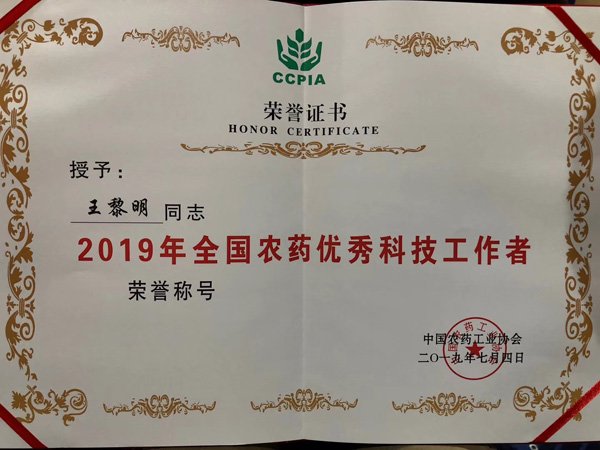 会议由中国农药工业协会、贵州大学共同主办。会上对江苏密友粉体新装备制造有限公司副总经理王黎明同志等“全国农药优秀科技工作者”进行了表彰颁奖。